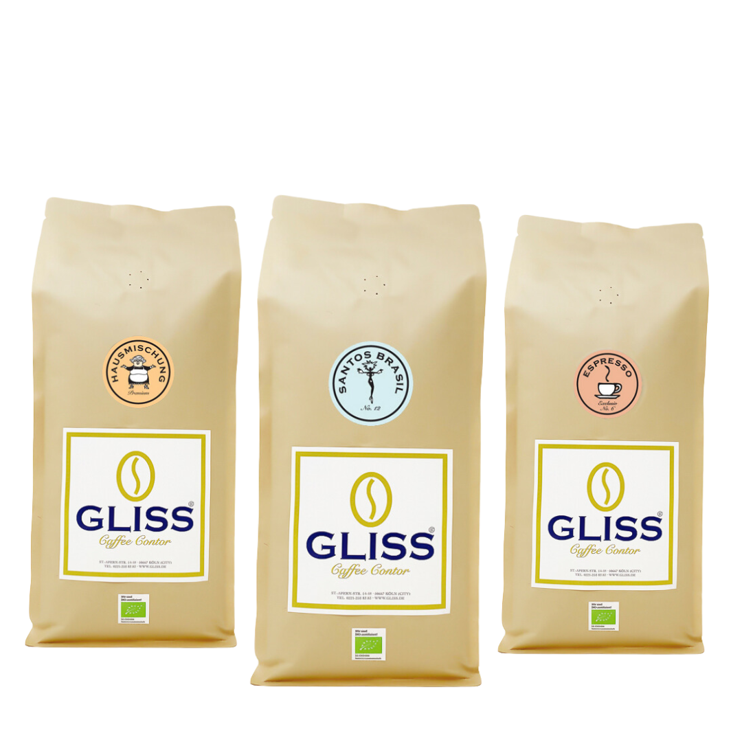 GLISS® „No. 12 Santos Brasil“, 250 g: Besticht durch nussig, süsslich & würziges Aroma. Die Bohnen des Plantagen-Kaffees wachsen in den Höhenlagen Brasiliens. 10% der Komposition des GLISS No.12 stammen aus einer traumhaften Berglandschaft im Süden Indiens und runden ihn geschmackvoll ab. Der Santos Brasil ist unser Allrounder und eignet sich für für einen milden Espresso und für alle Kaffeespezialitäten und Zubereitungen.